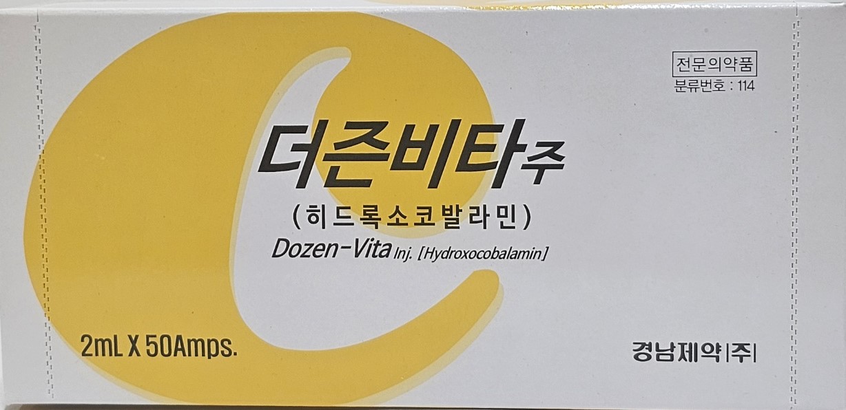 비타민 B12 결핍으로 인한 거대적아구성 빈혈과 관련된 다발성신경염의 치료 용법ᆞ용량 성인 : 히드록소코발라민으로서 1일 1회 5,000ug을 근육주사 또는 정맥주사한다. 임상적 반응에 따라 저용량으로 치료를 지속한다. 경고 1) 앰플주사제는 용기 절단시 유리파편이 혼입되어, 부작용을 초래할 수 있으므로 사용시 유리파편 혼입이 최소화 될 수 있도록 신중하게 절단 사용하되. 특히 어린이, 노약자 사용시에는 각별히 주의할 것. 2) 매일 세잔 이상 정기적으